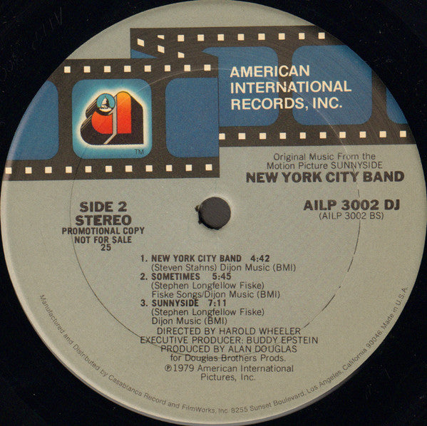 Catalog number on inner label: AILP 3002 DJ Catalog number on spine: AILP 3002 Original Music From The Motion Picture "Sunnyside" Starring Joey Travolta Produced for Douglas Brothers Corporation. Recorded & mixed at Media Sound, New York. Mastered at Allen Zentz, Hollywood.