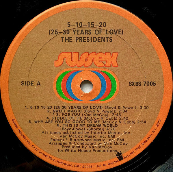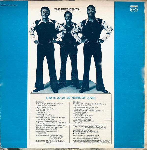Produced for White House Productions All tunes published by Interior Music, Inc./Van McCoy Music, Inc.(BMI) except tracks A3 and B6 published by Blackwood Music Inc. BMI Track B6 mispelted on label: "Gotta Keep Mo vin'"