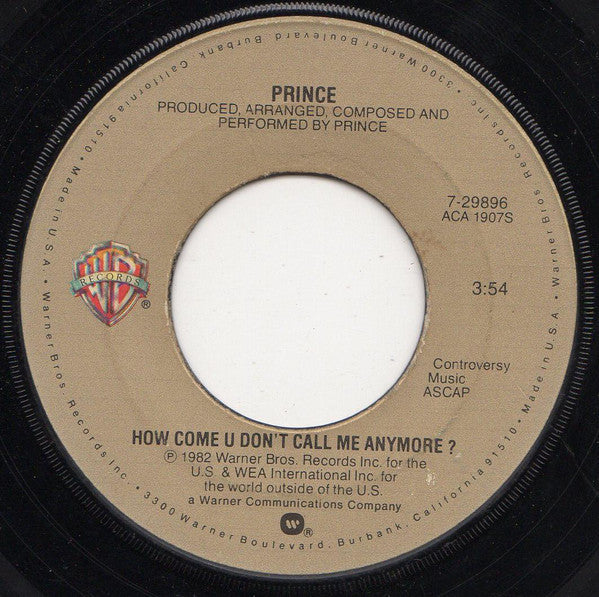 Darker label with different layout than the Polystyrene [r=574672 On this issue, "a Warner Communications Company" at bottom of label is not separated from text above it by a blank space Also released in a purple colored jacket [r=5877311 Catalog number on sleeve: 9 29896-7 Catalog number on record: 7-29896 From the Warner Bros. Two-record set Prince 1999 (1-23720) ©1983 Warner Bros. Records Inc. ℗1982 Warner Bros. Records Inc. for the U.S. and WEA International Inc. for the world outside of the U.S. Made in U.S.A. First released with no picture sleeve. Re-released in the summer of 1983 after the success of "Little Red Corvette" with this picture sleeve and same catalog number.