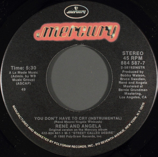 A - From the Mercury album 422-824 607-1 M-1 "150454" B - Original version From the Mercury album 422-824 607-1 M-1 "150454" Published By A La Mode Music (Admin. by WB Music Group) (ASCAP) ℗ 1985 [l129352 Manufactured and Marketed By [l129352, 810 Seventh Avenue, New York, N.Y. 10019
