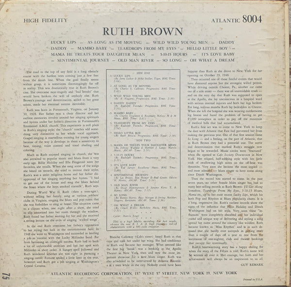 First issue with different printing on Atlantic black label. Without Atlantic logo on front sleeve. Recordings made 1949-56