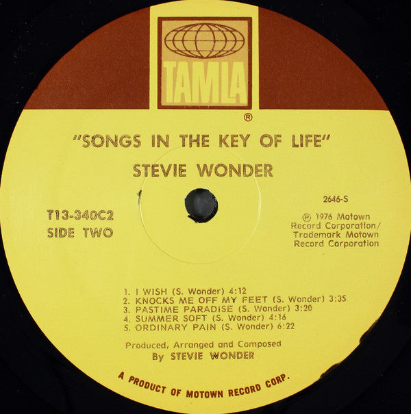 Pressed by [l1189798 using [l264380 metalwork Collector's album includes two LP's, a 7" EP (A Something's Extra for "Songs In The Key Of Life") and 24-page lyric booklet. All records pressed on black vinyl. This version is different from [r4993840 because it does have the die cut for the bonus 7".