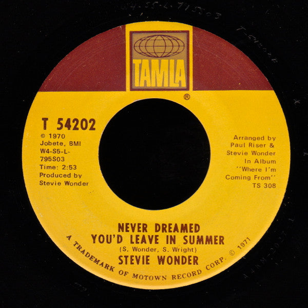 Side A: In Album "Signed, Sealed and Delivered" TS 304 Side B: In Album "Where I'm Coming From" TS 308 There is a version of this release with a different label layout here: We Can Work It Out