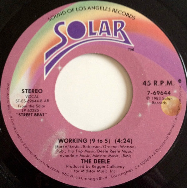 A - Edit Of the Solar LP 60410 - "166395" Published By Hip Trip Music / Deele Reele Music / Midstar Music, (BMI) B - From the Solar LP 60285 - "166395" Published By Hip Trip Music / Deele Reele Music / Avondale Music / Midstar Music, (BMI) Sound of Los Angeles ℗ 1983 [l67671 A Division of [l552180 Manufactured and Distributed By [l264155
