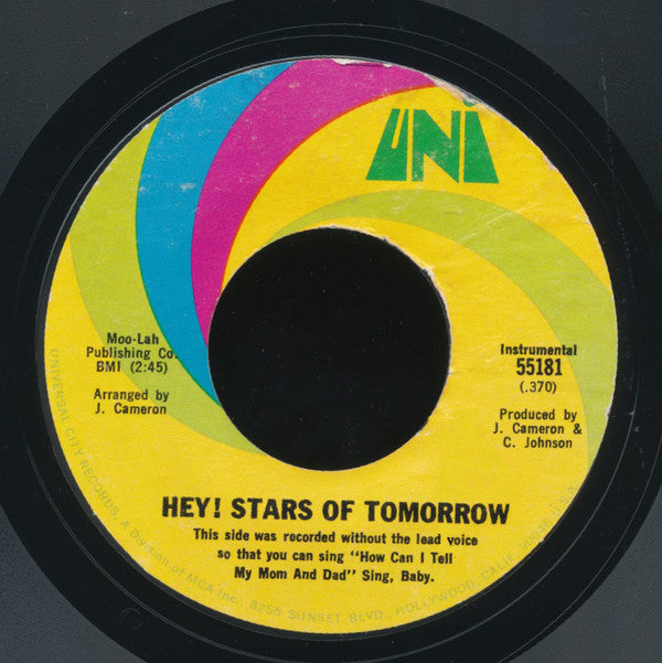 Label variation (see images). B: "This side was recorded without the lead voice so that you can sing 'How Can I Tell My Mom And Dad' Sing, Baby."