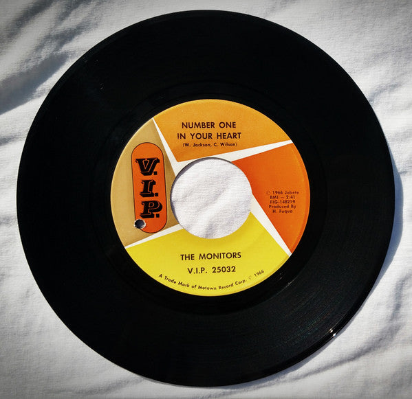 Side A: (c)1961 Jobete BMI Side B: (c)1966 Jobete BMI V.I.P. 25032 below band name.