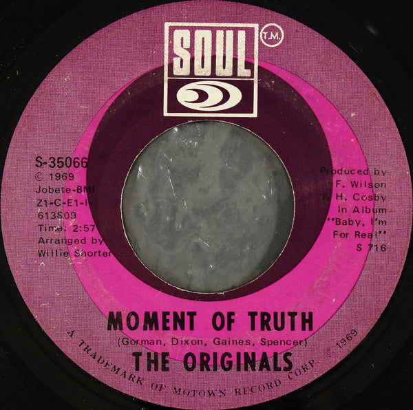 Label variant: references album: Baby I'm For Real © 1969 Jobete-BMI From Album "Baby I'm For Real" S 716 A Trademark of Motown Record Corp. © 1969 Exact release date culled from Don't Forget The Motor City, an online Motown discography.