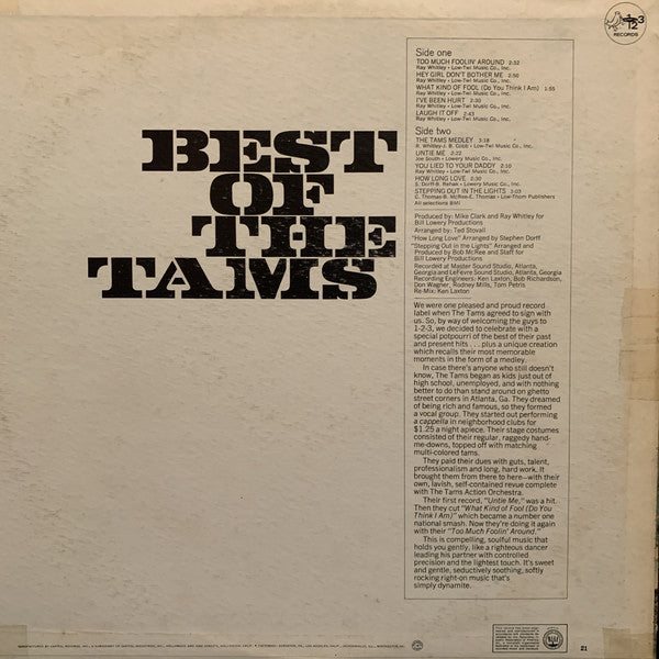 Although billed as a "Best Of" compilation, this is actually an album consisting of re-recorded hits from The Tams' ABC days (Side A), plus some new material (Side B).