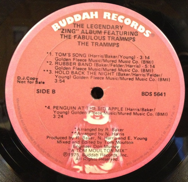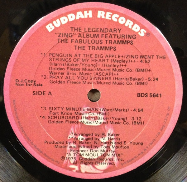 Full color label promo with added "D.J. Copy Not For Sale" text at left. Comes in the standard cover with an added large sticker at bottom left with suggested tracks for airplay. Recorded at Sigma Sound Studios, Philadelphia, Pennsylvania. Mastered at Media Sound, New York, New York. "A Tom Moulton mix" Marketed and Distributed by Buddah Records Inc. All songs published by Golden Fleece Music & Mured Music Co. (BMI) except "Zing Went The Strings Of My Heart" published by Warner Bros. Music (ASCAP) and "Sixty Minute Man" published by Fort Knox Music Co. (BMI). © 1975 Buddah Records, Inc. - A subsidiary of Viewlex, Inc./℗ 1975 by Buddah Records, Inc.
