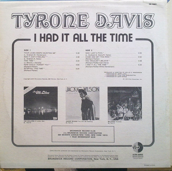 Tyrone Davis : I Had It All The Time (LP, Album, Promo)