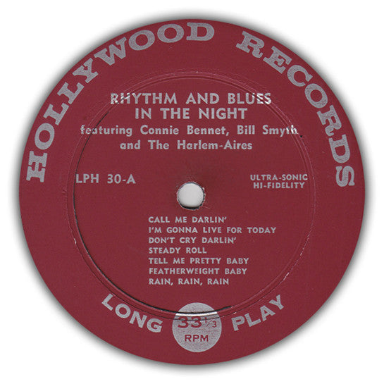 This is a compilation album even though it's credited to Connie Bennet, Bill Smyth and the Harlem-Aires (the only names given, on the cover and the labels). The recordings by the artists given in the listing were all originally released on the Abbey label (1949-1952). The cover is graced by Julie Newmar. See www.bsnpubs.com for more information.