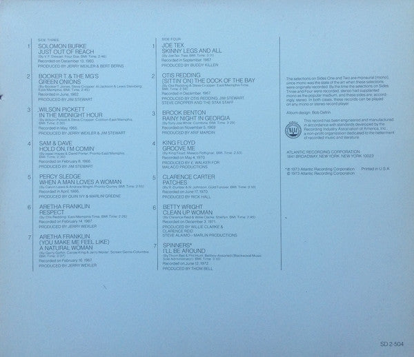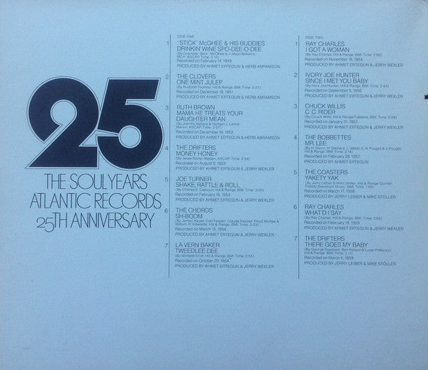 Presswell pressing denoted by PR plant code on labels. No WCI logo in rimtext. "Atlantic Records 25th Anniversary" Sides A and B are in mono. Sides C and D are in stereo. Comes in a double fold-out sleeve.