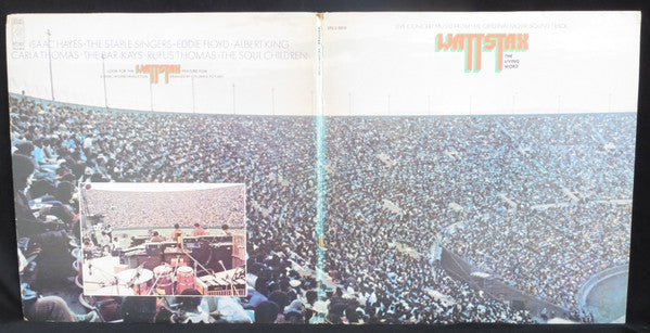 Yellow Promo labels, similar to [r422672 but with "DJ COPY NOT FOR SALE" printed above the Stax logo on each side. This release came when Stax was nearing its end. They had taken the top acts from their label to California for a massive concert recorded and filmed at the LA Coliseum on August 20, 1972. More than 110,000 people attended this event - tickets that day were only $1. Performance durations: The Staple Singers 21:00 Eddie Floyd 7:09 Carla Thomas 13:03 Rufus Thomas 15:48 The Bar-Kays 15:00 Albert King 15:28 The Soul Children 14:16 Isaac Hayes 17:44