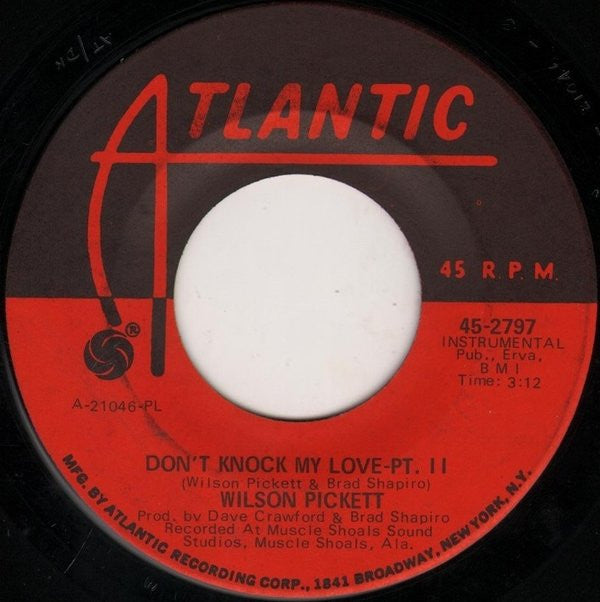 There is another release in the database with a slightly different label layout Don't Knock My Love: "Muscle Shoals, Alabama" instead of "Muscle Shoals, Ala." and pressed by [l27576. Instrumental Pub., Erva BMI Recorded At Muscle Shoals Sound Studios, Muscle Shoals, Ala. Mfg. By Atlantic Recording Corp., 1841 Broadway, New York, N.Y.