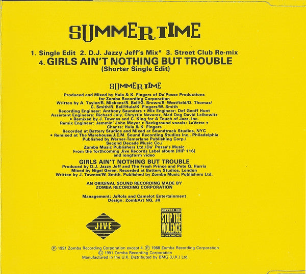 1 to 3 Produced and Mixed for Zomba Recording Corporation. Remixed for A Touch Of Jazz, Inc. Recorded at Battery Studios and Mixed at Soundtrack Studios, NYC. Remixed at The Warehouse/J.E.M. Sound Recording Studios Inc., Philadelphia. Published by Warner-Tamerlane Publishing Corp/Second Decade Music Co./Zomba Music Publishers Ltd./Da Posse's Music. 4 Recorded at Battery Studios, London. Published by Zomba Music Publishers Ltd. (p) 1991 Zomba Recording Corporation except track 4 (p) 1988 Zomba Recording Corporation. (c) 1991 Zomba Recording Corporation. Manufactured in the UK. Matrix text is reversed so readable from the printed face. Pre-1994 so no Mastering or Mould SID codes.