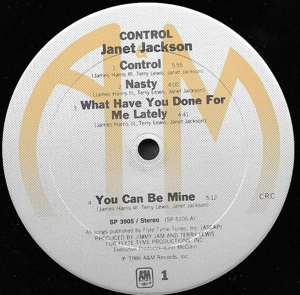 LP housed in color lyric sleeve with artwork. "CRC" is on label and on rear cover. Recorded and Mixed at Flyte Tyme Productions, Inc. Mpls., MN B3 Basic track recorded at Creation Audio, Mpls., MN © ℗ 1983 A&M Records, Inc. All songs published by Flyte Tyme Tunes, Inc. (ASCAP) except: B4 also published by Crush Club Music