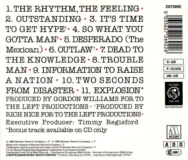 Distributed in the UK by BMG Records Distributed in Europe by BMG Ariola Track 11 - Bonus Track Available On CD Only