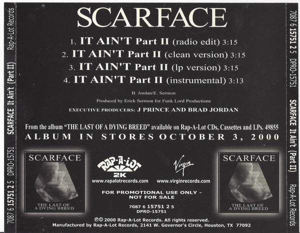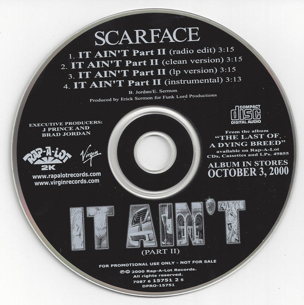Scarface (3) : It Ain't Part II (CD, Single, Promo)