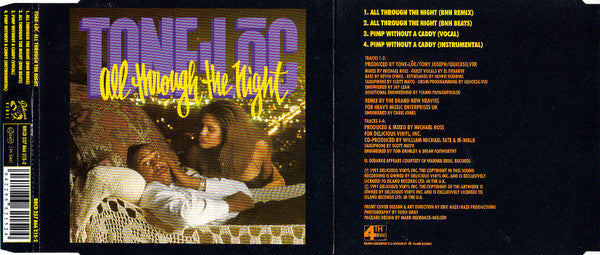 Tracklist on disc label is different than the cover: 1. All Through The Night (BNH Radio) 3:48 2. All Through The Night (BNH Remix) 5:53 3. Pimp Without A Caddy (Vocal) 5:47 4. Pimp Without A Caddy (Instrumental) 5:06 1, 2 remixed ... for Heavy Music Enterprises UK 3, 4 produced & mixed ... for Delicious Vinyl, Inc.