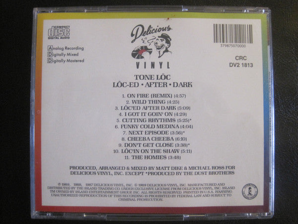 CRC marking below barcode on rear cover. Recorded at Delicious Vinyl Studios, Hollywood, California. ℗ 1989, 1988, 1987 Delicious Vinyl, Inc. © 1989 Delicious Vinyl, Inc. Manufactured and distributed by The Island Trading Co. under exclusive license from Delicious Vinyl, Inc. Printed in U.S.A.