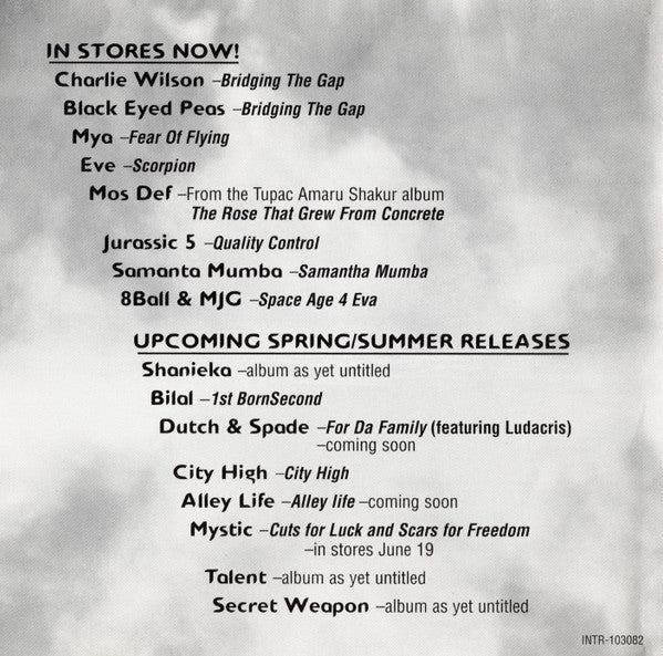 Tracks 2, 11, and 16 have no ISRC's present on disc. UPCOMING SPRING/SUMMER RELEASES Shanieka -album as yet untitled Dutch & Spade -For Da Family (featuring Ludacris) -coming soon Alley Life -Alley Life -coming soon Talent -album as yet untitled Secret Weapon -album as yet untitled