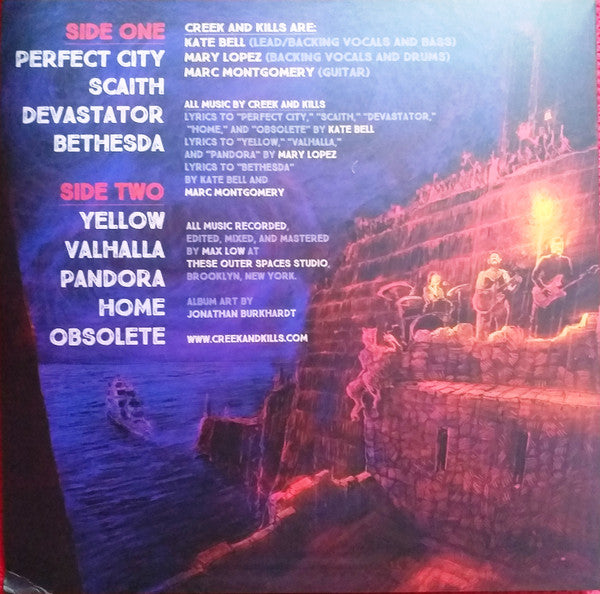 All music by Creek and Kills Lyrics to "Perfect City," "Scaith," "Devastator," "Home," and "Obsolete" by Kate Bell Lyrics to "Yellow," "Valhalla," and "Pandora" by Mary Lopez Lyrics to "Bethesda" by Kate Bell and Marc Montgomery These Outer Spaces Studio, Brooklyn, New York www.creekandkills.com Matrix side A: CAK001-A 33501.1 (1) BBM Matrix side B: CAK001-B 33501.2 (1) BBM 100 LPs and 100 CDs pressed