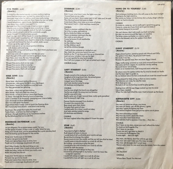 [l406973 pressing on orange RCA Victor labels. Includes printed inner sleeve with lyrics (except "It Ain't Easy") and durations. Dynaflex. Produced at Trident Studios, London. A GEM Production. © 1972, RCA Records, New York, N.Y. • Printed in U.S.A. All songs © 1971, 1972 by Tantric Music Corp. in the U.S.A. and Canada and Titanic Music Ltd. / Chrysalis Music Ltd. outside of the U.S.A. and Canada.