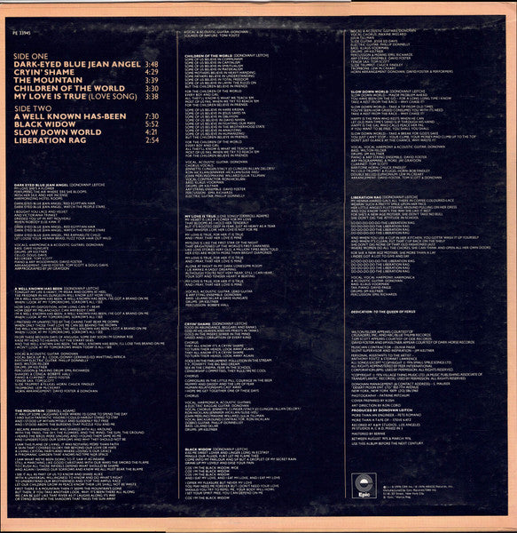 Recorded at A&M Studios, Los Angeles in studios A, C & D, mixed in 3 between August 1975 and March 1976. "To the queen of Venus" "Use this album before the next century."