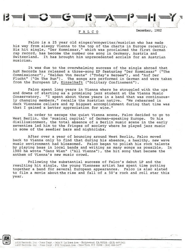 Falco - Der Kommissar = The Commissioner (12", Promo) (VG+)