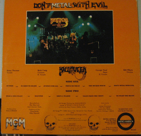 According to the band 7000 copies were pressed. Photos/lyrics printed on inner sleeve. Recorded at The Disc Ltd, East Detroit, Mich. All songs ℗ © 1984 Motor City Metal / Jet Eye Music BMI except Track B1 Starcraft Songs, A.P.S. ©℗ 1985 Motor City Metal MCM Records Marketed and distributed by Metro-America Distribution