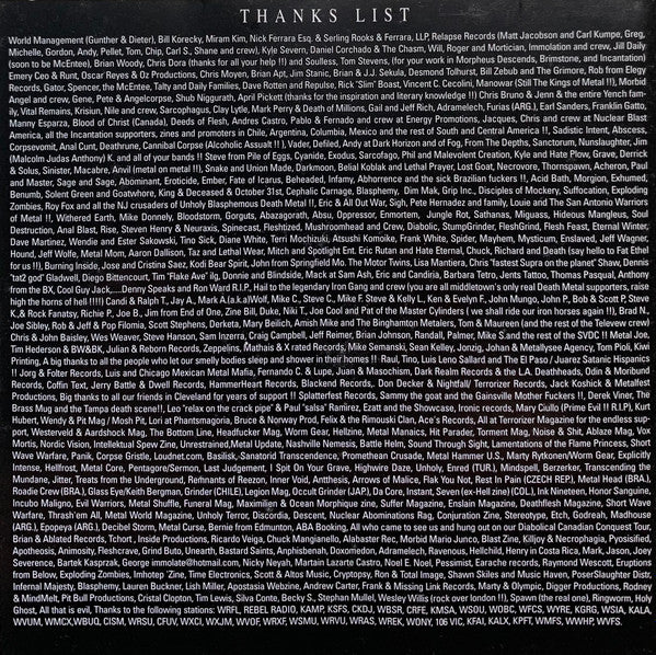 Recorded at Mars Studios in Cleveland, OH from Nov to Dec 1999. All songs published Ibex Moon Entertainment (ASCAP) and Horned Moon Music (BMI). Track 3 published by Horned Moon Music (BMI). Track 8 published by Ibex Moon Entertainment (ASCAP). ℗&©2000 Relapse Records, Inc. This is 1st pressing on CD from 2000.