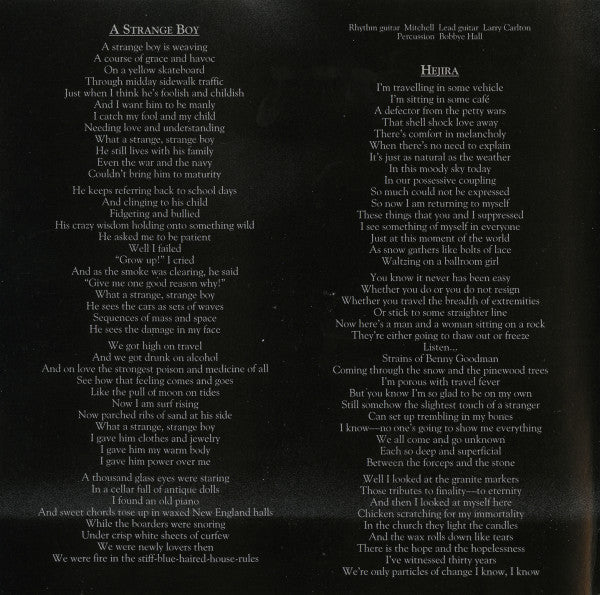 Recorded at A&M Studios in Hollywood Mastered at Ocean View Digital Mastering, Los Angeles, California, using the Pacific Microsonics HDCD system. All songs © 1976 Crazy Crow Music (BMI) © 1976 Elektra/Asylum Records ℗ © 1976 Asylum Records Printed in U.S.A.