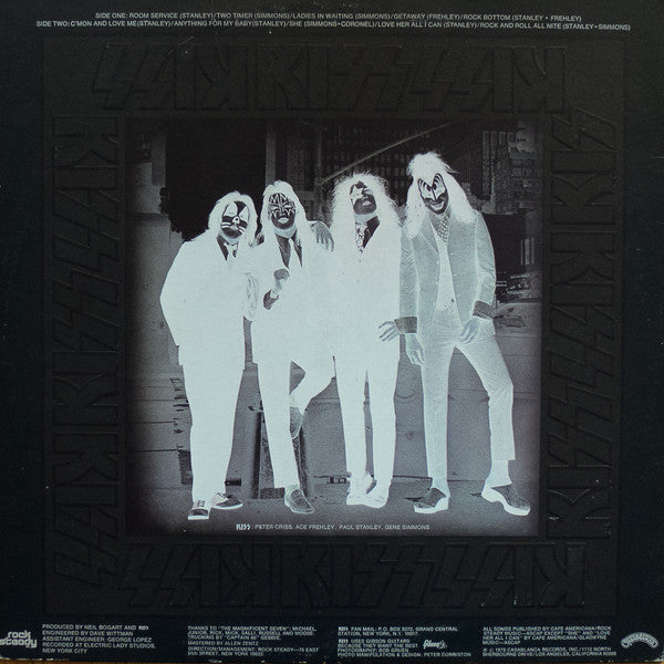 Label variation with KISS to the right of center hole and Manufactured & distributed by Casablanca Records, Inc. / Made In U.S.A. at bottom.