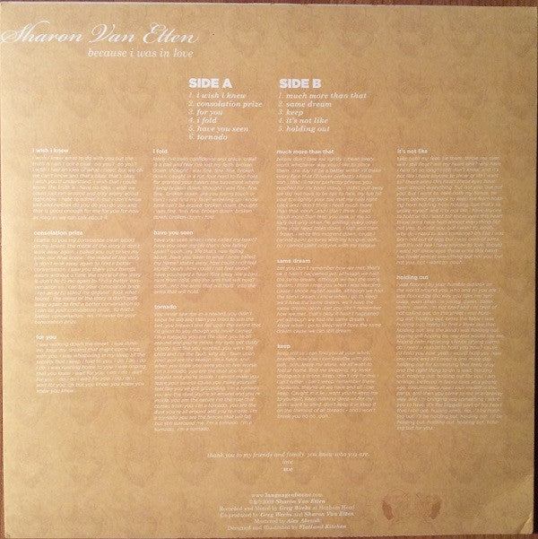 ©&℗ 2009 Sharon Van Etten. Recorded and mixed at Hexham Head. Includes lyrics on rear sleeve.