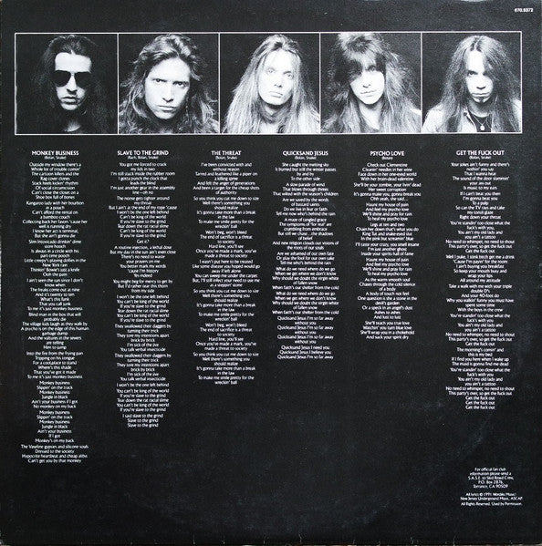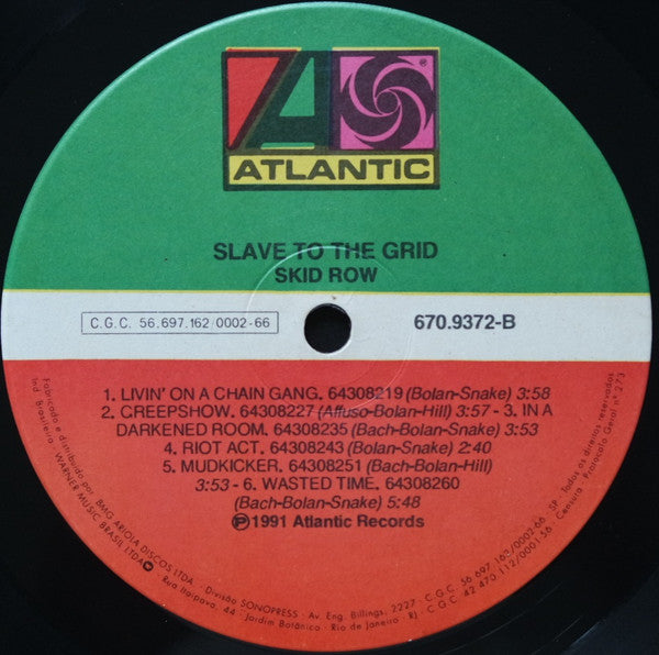 Recorded at New River Studios and Scream Studios Mixed at Scream Studios Mastered at Sterling Sound, New York Cat# 01332, spine, back cover 670.9372 spine, front cover, labels. 756782242-1, back cover Misprint on Label Side B, record title printed "Slave To The Grid" instead of "Slave to The Grind" Stamped runouts, except last "3" on B side var 2, etched.