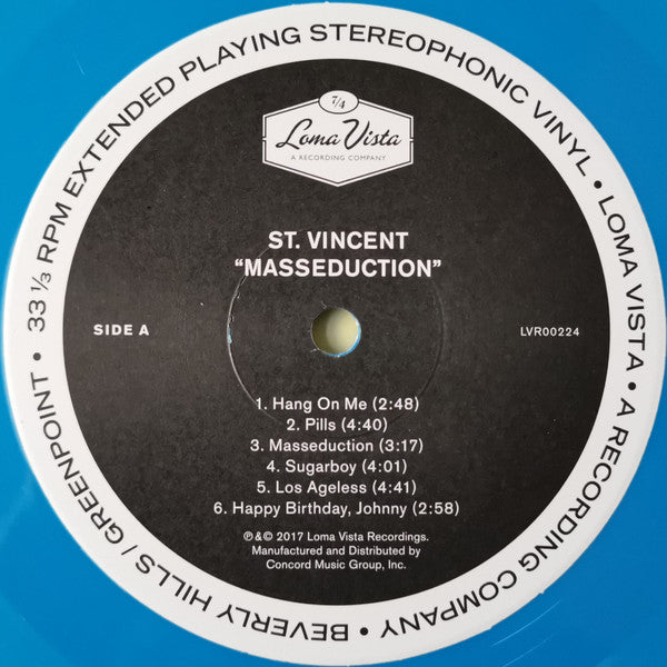 Alternate cover colour. Includes a 16-page booklet, an iron-on, a download coupon, a cocktail recipe and an art print. ℗ & © 2017 Loma Vista Recordings. Manufactured and distributed by Concord Music Group, Inc., 100 N. Crescent Drive, Beverly Hills, CA 90210. Made in the U.S.A. Recorded at Electric Lady Studios in New York, NY Additional recording at Rough Consumer Studio in Brooklyn, NY and Compound Fracture in Los Angeles, CA Mastered [... at Sterling Sound, in New York, NY Vinyl cut [... at Sterling Sound, in New York, NY Publishing Annie Clark: Big Deal Notes / Nail Polish Manifesto Music (ASCAP). All Rights administered by Words & Music. Jack Antonoff: Sony / ATV Songs LLC / Ducky Donath Music (BMI) Joy Williams: Joy Williams (BMI) - EMI Blackwood Music Inc. / Here's To Me Music (BMI) Mark Anthony Spears (Sounwave): Mark Anthony Spears (ASCAP) - Sony/ATV Allegro / Beat Bully Productions (ASCAP)