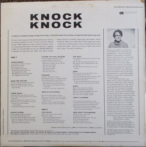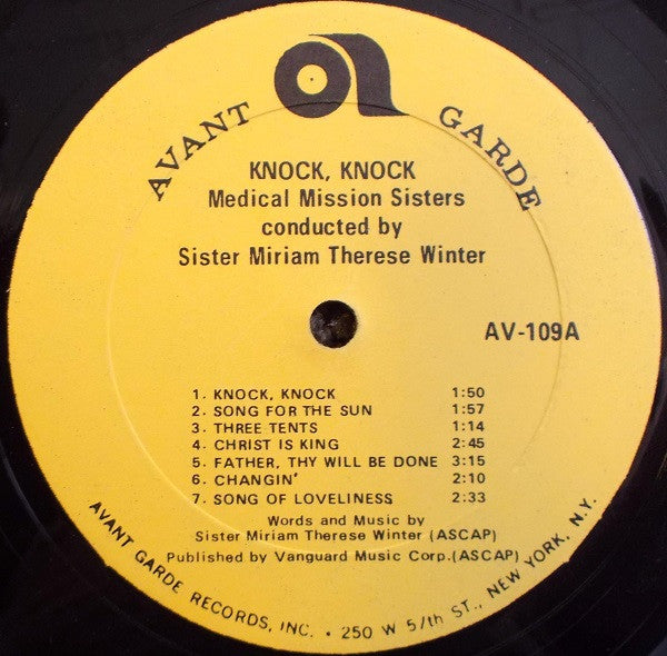 Labels and Spine Read Knock, Knock whereas the front cover and back cover read Knock Knock. This pressing has Yellow labels. Runouts are etched.