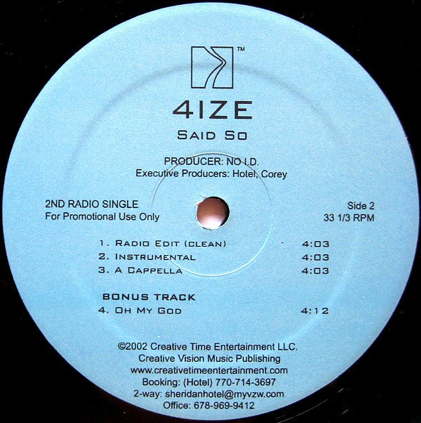 4-Ize : The Cake Song / Oh My God / Said So (12", Promo)