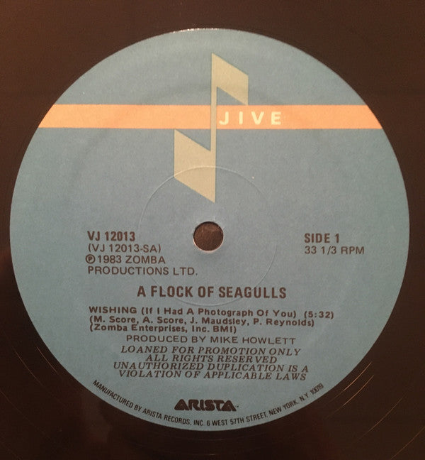 Promo copy in full color picture sleeve, Gold stamp rear cover. ℗&© 1983 Zomba Productions Ltd. Marketed and distributed by Arista Records.
