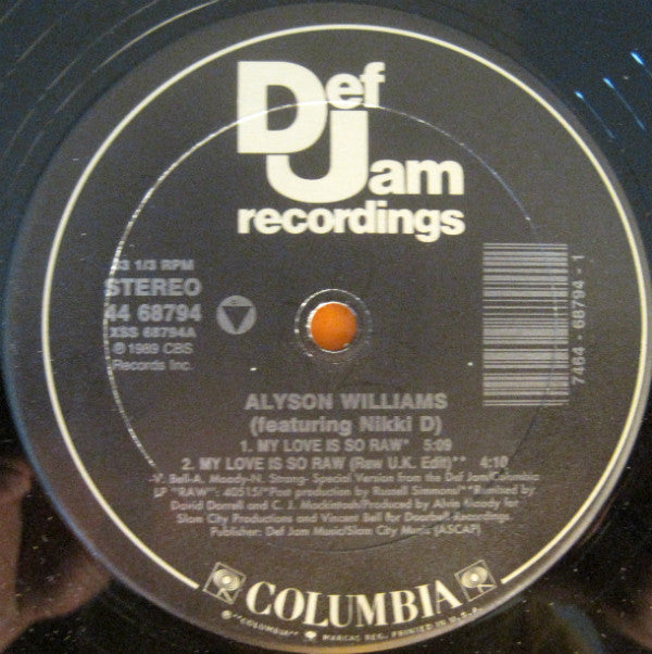 Alyson Williams Featuring Nikki D - My Love Is So Raw (12") (M)