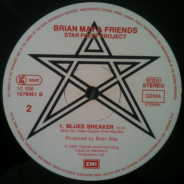 Recorded at the Record Plant, Los Angeles, California, U.S.A. on 21 and 22 April 1983 Mixed at SARM East and SARM West, London, England. Mastered at A&M, Los Angeles, California. Made In EEC "Brian May + Friends" on sleeve, "Brian May & Friends" on labels. On rear sleeve: Printed in Germany