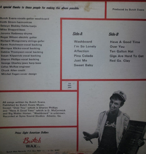 All songs written by Butch Evans. Published by Butch Evans Music. Except "Over You" Which is Sharon Phillips and "Have a Good Time" which is D. McCormick and Big Walter Horten. "Washboard" is unknown. Recorded at Spire Sound Studios Atlanta,Ga.