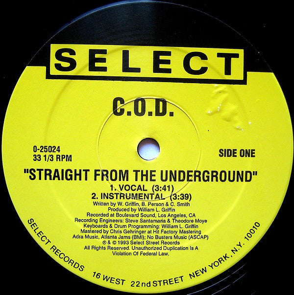 Recorded at Boulevard Sound, Los Angeles, CA. From the album "Straight From The Underground" (21646).