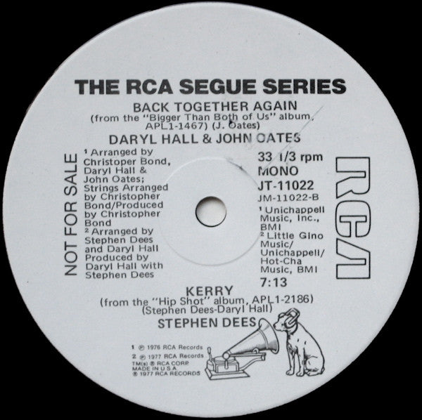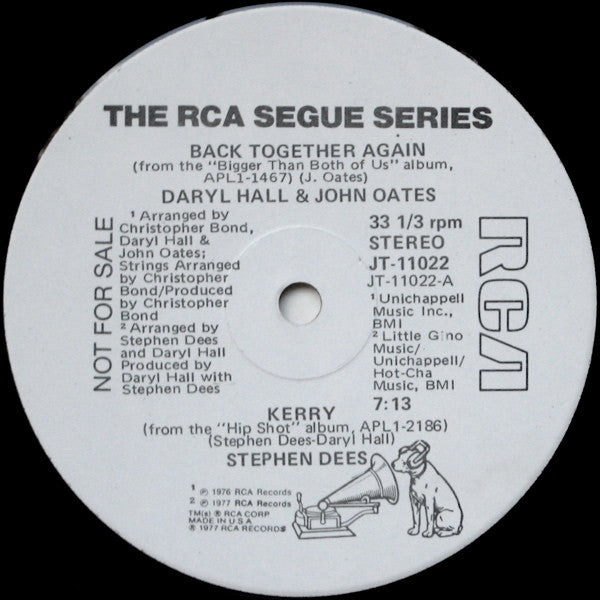 NOT FOR SALE "Back Together Again" From the <a href=>"Bigger Than Both Of Us"</a> album, APL1-1467 Unichappell Music Inc., BMI ℗ 1976 RCA Records "Kerry" From the <a href=>"Hip Shot"</a> album, APL 1-2186 Little Gino Music/Unichappell/Hot-Cha Music Inc, BMI ℗ 1977 RCA Records TM(s) ® RCA Corp Made in U.S.A. ® 1977 RCA Records Playing time is listed on the record as 7:13 The two tracks segue together at the 3:16 point.