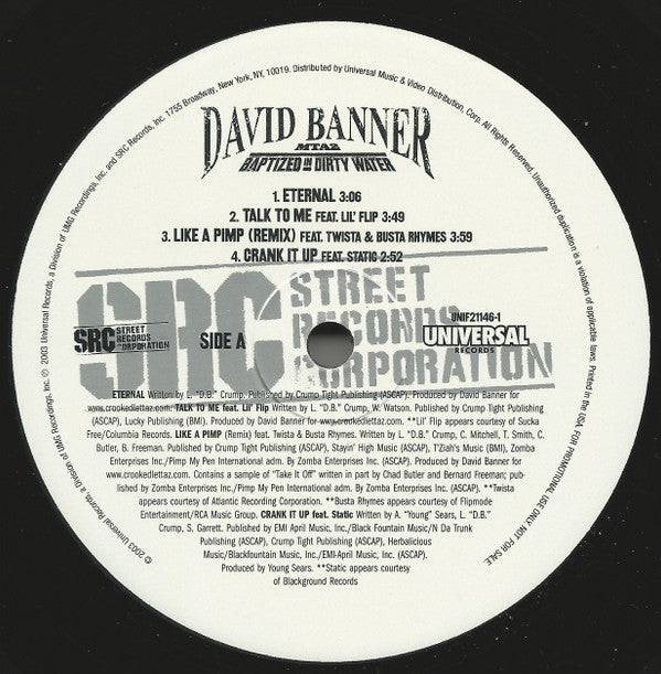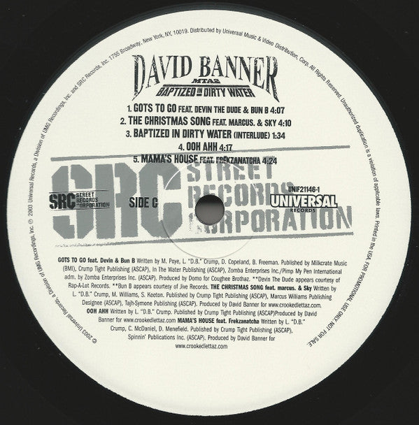 David Banner : MTA2: Baptized In Dirty Water (2x12", Promo)