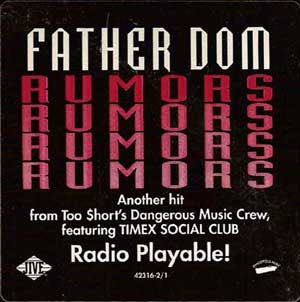 Promotional copy From Father Dom's forthcoming debut album "Mellow Madness" (41572-2/4) on Dangerouns Music / Jive Records disks and tapes "Rumors (Jealous A. Remix - Clean)" contains an interpolation of "Rumors", written by M. Marshall, A. Hill and M. Thompson, courtesy of Jay King IV Publishing and Danica Music (BMI) Mike Marshall appears courtesy of No Mayo Records