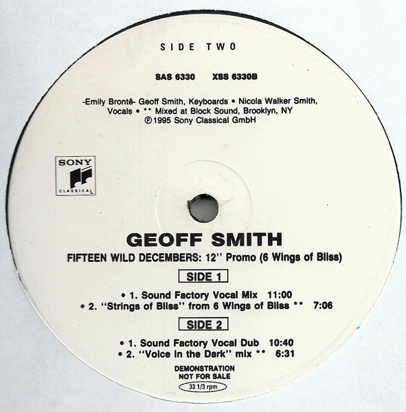 ℗ 1995 Sony Classical GmbH Title on label: Fifteen Wild Decembers: 12" Promo (6 Wings Of Bliss). Tracks A2 & B2 mixed at Sound Block, Brooklyn, NY. Demonstration Not For Sale 1st of 2 separate promos.