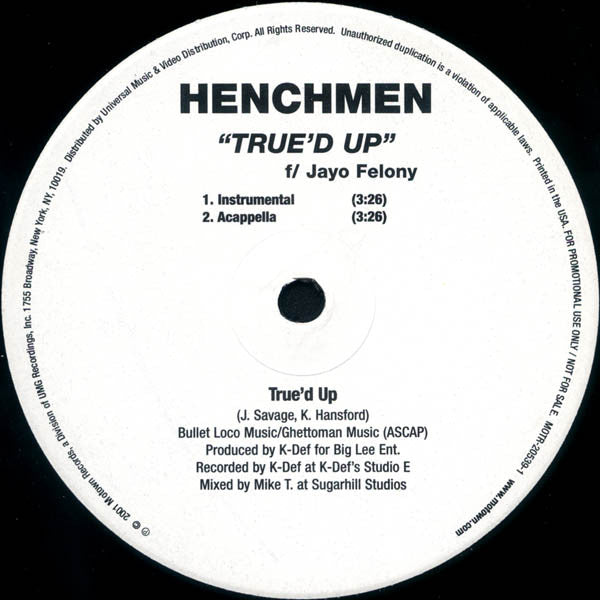 Henchmen - True'd Up (12", Single, Promo) (M)