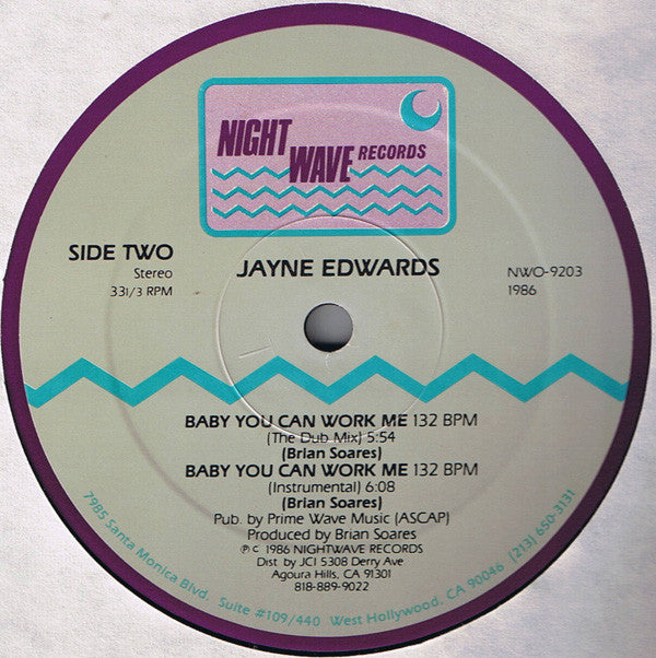 Jayne Edwards : Baby You Can Work Me (12", Maxi)