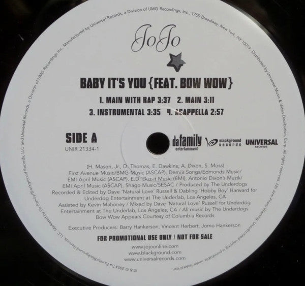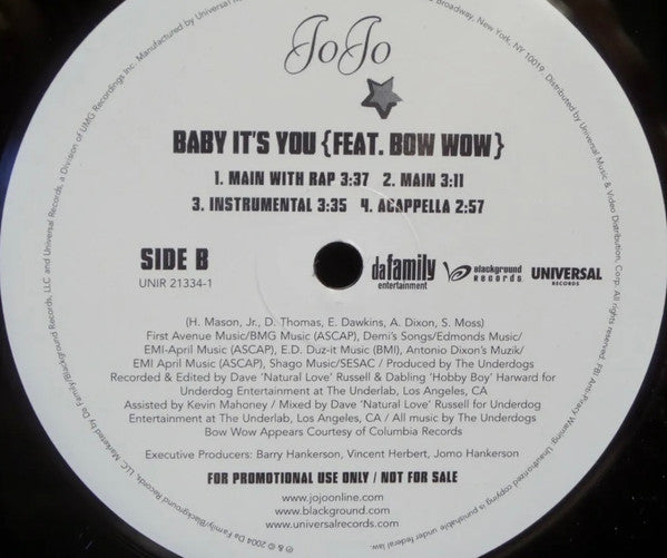 JoJo (3) Feat. Bow Wow - Baby It's You (12", Promo) (NM or M-)